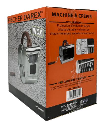 Machine à crépir en inox. Projection d'enduit de façade à base de sable + ciment ou chaux mélangés, enduits monocouche...