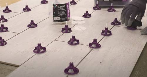 Système auto-nivelant à vis. Pour réaliser un carrelage parfaitement de niveau. Idéal pour les carreaux de grand format.
