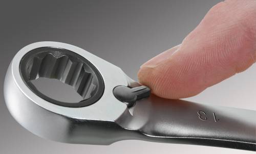 Clés à cliquet Ultra-Grip : jonc de retenu sur l'oeil + encoche anti-ripage sur la fourche. Ne glisse pas sur les écrous, sécurité optimale. Mécanisme à cliquet compact, réversible par levier. Meilleure accessibilité. Angle de reprise à 5°. Oeil et fourche inclinés à 15°. Chromée satinée.