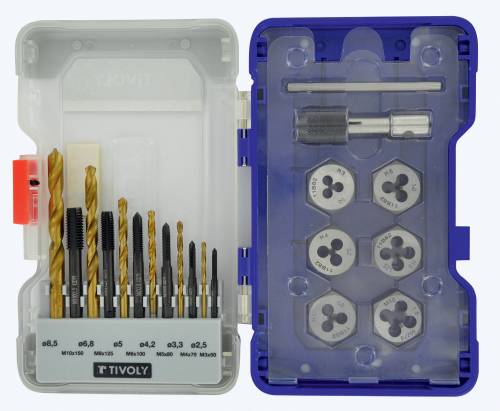 Un équipement complet de taraudage et filetage, avec les 6 forets aux cotes spécifiques de taraudage.