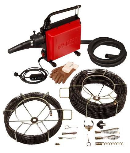 Pour canalisations de Ø 50 à 150 mm, longueur maximale de 70 m. Moteur électrique 750W, réversible droite/gauche, 690 tr/min, IP44, sans entretien, qui permet de délivrer un couple important pour un débouchage efficace. Courroie crantée pour une transmission de la puissance moteur sans glissement. Très résistante à l’usure. Câble de raccordement électrique avec disjoncteur différentiel (PRCD) intégré, pour une protection optimale du déboucheur mais également de l’utilisateur. Mâchoires d’entrainement extérieures permettant le changement instantané du câble , roulements étanches, graissés à vie, sans entretien. Manche gainé pour l’embrayage et le transport. Avance manuelle du câble pour une approche rapide et précise de l’outil vers le bouchon. Tuyau de guidage pour éviter les projections des eaux usées dans l’environnement de travail. Epingle d’accroche pour fixer le câble au déboucheur lors de l’ajout ou du retrait d’une section (évite la perte involontaire de la section engagée dans la canalisation). Pieds avec protection en caoutchouc antidérapant pour une meilleur stabilité en utilisation.