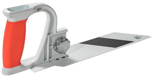 Monture et lame de scie pour la coupe du PVC. Nouvelle poignée à revêtement Confort. Couleur rouge vif pour une meilleure visibilité sur les chantiers. Nouvelle molette de serrage : plus large et moins haute. Pour un serrage facile, sans gêner la coupe. Nouvelle denture : pour des coupes encore plus rapides, plus nettes et droites. Facile : la lame est biseautée à 45° à son extrémité. Pour caler parfaitement le départ de la coupe. Assure des coupes à la longueur voulue, sans déviation du départ. Lame rigide : assure des coupes droites, même sur les gros tubes. Robustesse et légèreté : poignée en alliage d’aluminium. Pratique : positionnement de la lame en quelques secondes en configuration «à l’horizontale», pour les coupes à ras des tubes sortant d’un mur, d’une couverture ou d’un plancher.