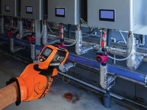 Thermomètre digital à infrarouge avec système de pointage laser double. Ne convient pas pour mesurer la température corporelle.