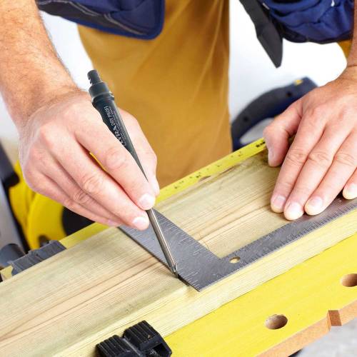 Pour un marquage professionnel sur toutes les surfaces (bois, métal, plastique, verre, céramique...). Mécanisme de bouton poussoir pour faire avancer la mine dans le tube en acier inoxydable. Utilisation facile d'une seule main grâce au mécanisme de clip optimisé. Taille-crayon intégré avec guide pour une taille rapide et pratique en gardant l'étui à la ceinture. Mine graphite spéciale incluse, effaçable avec un chiffon humide sur les surfaces lisses. Durable grâce à la possibilité de recharger les mines, aussi bien par l'avant que par l'arrière.
