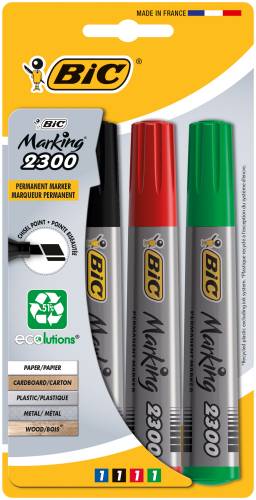 Marqueur feutre indélébile, permanent. Idéal sur papier, carton, plastique, métal et bois. Corps en plastique solide, composé à 51% de matériaux recyclés.