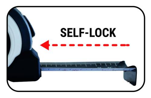 Boîtier en ABS caoutchouté résistant aux chocs. Ruban laqué : Numérotation horizontale noire à l'avant avec décimales jaunes à haute visibilité Numérotation verticale blanche à l'arrière avec décimales rouges. Ruban enduit de nylon avec couverture supplémentaire sur les 20 premiers centimètres pour une protection augmentée. Forme spéciale en W pour une plus grande extension au-delà de 3,5m.