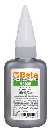 Idéal pour le blocage permanent. Idéal pour tous les pièces qui ne doivent pas être démontées ou pour l'application sur les surfaces métalliques passivées telles que le cuivre, l’aluminium, l’acier, l'inox etc. Ne permet pas le démontage avec outils manuels. Frein filet anaérobie pour tous les accouplements métalliques filetés. Prévient le desserrage de vis, boulons et goujons causé par les vibrations et les chocs. Polymérisation en contact avec des pièces métalliques rectifiées et en absence d’oxygène. Haute résistance chimique (huiles, eau, gaz). Protège les filetages de corrosion et grippages de corrosion. ISO-10964.