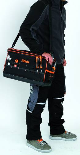 Base rigide en matière plastique résistante à l'eau. Élastiques et poches porte-outils internes et externes. Logements porte-documents intégrés dans le double-fond du couvercle. Vendu vide.