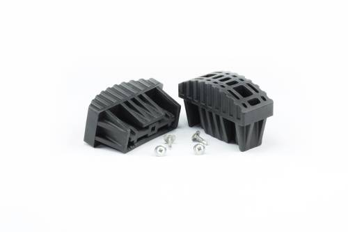 2 sabots enveloppants avec 4 vis autoforeuses. Ces sabots en caoutchouc s'adaptent à des échelles en aluminium ou en acier.