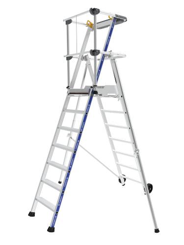 La plate-forme de travail Sherpamatic Lisses est la référence des postes de travail individuels fixes en particulier dans les milieux les plus exigeants. Ce produit allie robustesse et confort de travail et s'adapte parfaitement aux besoins des métiers du BTP. Cette PIR-PIRL en aluminium s'impose comme étant la référence des plate-formes sécurisées. Ses montants renforcés, sa plate-forme large, ses stabilisateurs réglables, son garde-corps rigide semi-automatique, font du Sherpamatic un produit extrêmement robuste et stable. Le confort de travail en toute situation : Sherpamatic Lisses, se transporte facilement grâce à ses grandes roues crantées, dispose d'un grand espace de travail optimisé et d'une stabilité parfaite, même sur terrain accidenté. Un produit responsable : Sherpamatic est une conception réfléchie, de sa fabrication à sa fin de vie pour répondre aux enjeux tels que la durabilité, recyclabilité, impacts environnementaux, émissions C02... Il dispose d'un porte-outils, de roues de déplacement et de marches de 80mm. Ceinture de sécurité semi automatique rigide à 360°. Portillon rigide semi-automatique. Stabilisateurs avec réglage millimétrique breveté. Montants en U ultra résistants. Plate-forme antidérapante. Verrou arrière anti-soulèvement. Roues de déplacement de 175mm. Plate-forme de 60x40cm. Tablette porte-outils avec crochets intégrés. Usage ultra-intensif. Charge maxi 150kg. Norme PIRL NF P 93353, PIR NF P 93352 et EN 131-7, décret 2004-924.