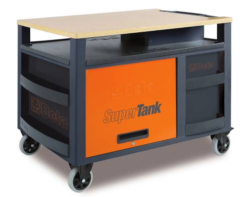 Etabli mobile avec 10 tiroirs (588x367mm) avec glissières à roulement à billes. Charge maxi : 1200kg.