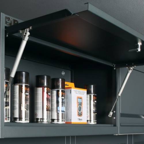 Équipé de ressorts à gaz, facilitant l'ouverture et la fermeture de la porte. Conçu pour l'application d'un profilé thermoplastique avec ruban LED art. 5000 RSC50/PLED ou 5000 RSC50/PLED-ST (non inclus), pour éclairer la zone de travail.