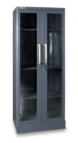Armoire en tôle à 2 portes pour ameublement atelier. 3 tablettes amovibles réglables en hauteur. Avec serrure.