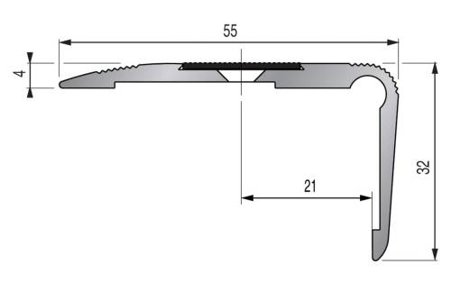 Nez de marche en aluminium anodisé percé avec bande antidérapante grise.