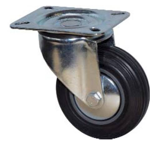 Roulette pour manutention silencieuse sur sols industriels. Avec pare-fils, bandage caoutchouc noir.