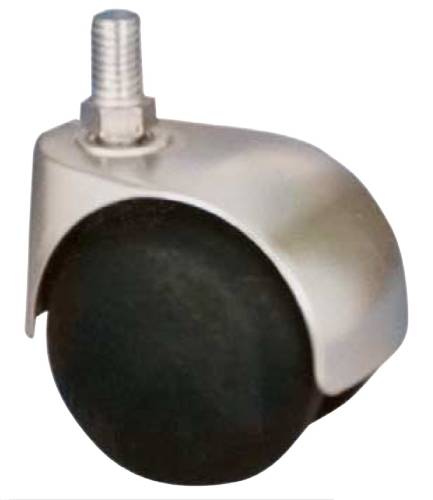 Roulette noire monture métal chromée pour sols durs ou moquettes peu épaisses pour fauteuil et petit mobilier. Galet plastique noir moyeu lisse axe clipsé.
