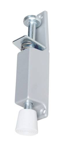 Butoir de porte à pédale avec ressort. Convient aux portes intérieures de poids normal. Après avoir appliqué la butée de porte sur la surface de la porte, vous pouvez verrouiller la porte en position en poussant votre pied sur la goupille supérieure. Pour déverrouiller la porte, il suffit appuyer avec le pied sur le levier.