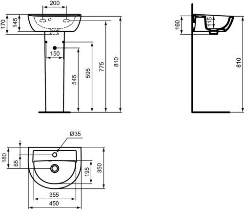 Lave-mains en porcelaine vitrifiée Ulysse blanc, percé d'un trou central pour la robinetterie. Fixation murale par 2 tire-fonds non fournis.