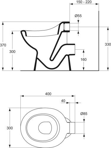 Cuvette indépendante Maternelle Contour 21 blanc. En porcelaine vitrifiée. Bride ouverte. Fond creux. Assise ergonomique à bord rond sans trou d'abattant. Sortie horizontale Ø8,5 cm. Sans réservoir, alimentation indépendante. Fonctionne à 4,5 litres. Fixation au sol par 2 vis. Raccordement par joint type Sirius N° 4. Hauteur de la cuvette 30 cm. A équiper du réservoir semi-haut