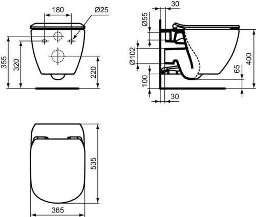 Cuvette suspendue Tesi blanc avec chasse d'eau révolutionnaire AquaBlade®. En porcelaine vitrifiée. Carénée chasse directe. Alimentation indépendante. À monter avec paire de tire-fonds à sceller non fournis ou bâti-support seul à encastrer ou bâti-support/réservoir. Avec abattant ultra-fin à frein de chute.