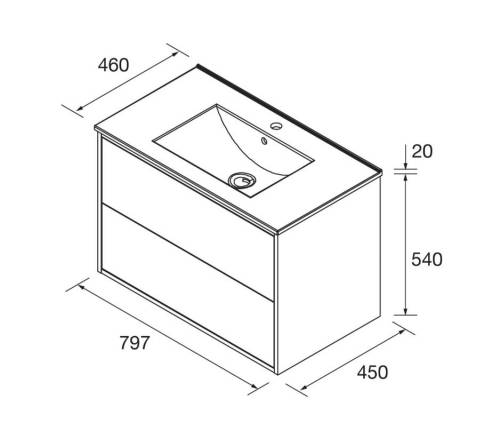 Meuble de salle de bain à deux tiroirs avec des guides cachées, une fermeture amortie et une régulation en hauteur. Dans le tiroir supérieur, il y a un organiseur de tiroir et dans le tiroir inférieur, il y a beaucoup d'espace de rangement. Système pusch. Séparateur de rangement inclus. Les faces et les côtés sont fabriqués en panneau de particules stratifié de 16mm, laqué avec de la peinture polyester supermat UV. Le plan 1 vasque intégré en porcelaine blanche qui garantit une résistance maximale à l'usure. Livré sans mitigeur ni bonde.