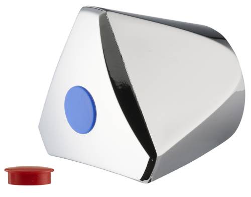 Croisillon de tête de robinet forme tricorne (plastique moulé léger, résistant aux chocs et à l'eau chaude). Pastille bleue pour l'eau froide et rouge pour l'eau chaude fournies.