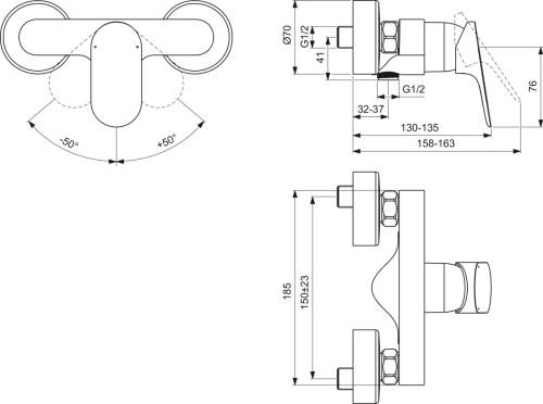 Mitigeur douche mural, Click technologie : point dur débrayable à 50% du débit, cartouche Firmaflow+ 38 mm, 12 l/min rosaces rondes. Produit un jet d'eau non aéré et délivre un jet cristallin et sans éclaboussures, Ideal pour économiser l'eau, point dur limitant le débit à 50%, Cartouche d'une grande durabilité >500 000 cycles d'utilisation., Chrome de qualité résistant aux rayures et plus facile à nettoyer.