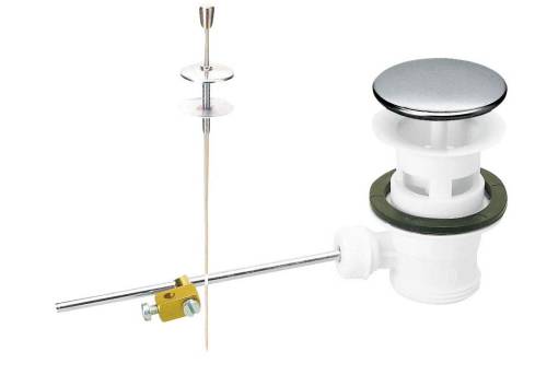 Bonde lavabo automatique pour lavabos avec trop plein. Clapet rentrant. Levier avec raccordement universel.