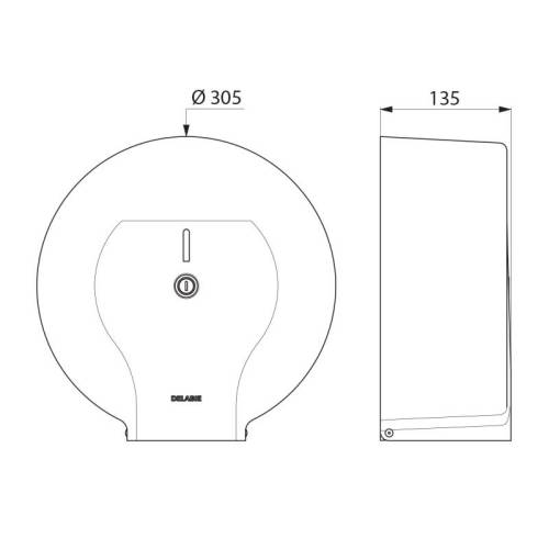 Distributeur de papier toilette mural. Grand modèle pour bobine de 400m. Dévidoir de papier toilette en acier laqué blanc. Couvercle articulé monobloc pour un entretien facile et une meilleure hygiène. Avec fond : protège des imperfections murales, de l'humidité et de la poussière. Avec serrure et clé standard Delabie. Contrôle de niveau. Garantie 30 ans. Réparabilité : 50 ans