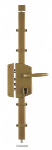 Boîtier peint époxy en acier embouti, têtière cambrée ép. 20/10ème. Coffre de 85x174mm, axe à 50mm, entraxe 70mm. Tringles standard permettant une condamnation de porte de 1,95m à 2,20m. Mécanisme permettant 1/2 tour avec la clé, de l'intérieur comme de l'extérieur. 3 pênes dormant Ø16mm et 1 pêne 1/2 tour Ø18mm en acier nickelé. Pênes haut et bas en acier nickelé Ø14mm sur tringles télescopiques en acier permettant un ajustement très précis à la longueur désirée. Gâche basse en acier zingué épaisseur 3mm. Carré 7mm. Béquille double fournie. Installation des tringles et cache-tringles, sans recoupe. Utiliser un cylindre 30x65mm pour une porte d'épaisseur 45mm. Axe à 50mm. Livrée sans cylindre.
