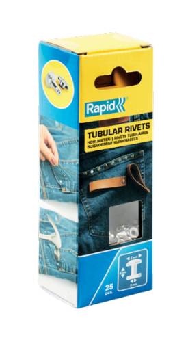 Ces rivets tubulaires sont parfaits pour de nombreuses applications sur le textile comme la customisation de jeans, la réparation de poches de pantalons ou des ceintures, ou tout autre type de fixation sur le textile ou le cuir.