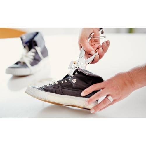 La pince RP05 est idéale pour la pose d'oeillets sur le cuir, les chaussures, la toile et bien d'autres matériaux. Elle est facile à utiliser et donne de bons résultats. Belle finition chromée et pièces en acier robuste. Elle intègre en sus une fonction poinçonnage pour prépercer les matériaux (jusqu'à 4mm d'épaisseur) avant la pose de l'oeillet. Garantie 2 ans.