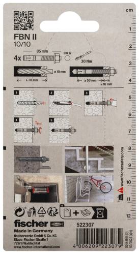 Goujon d'ancrage pour installation traversante et en attente. Le serrage de l'écrou entraîne le cône dans la bague d'expansion et expanse cette dernière contre les parois du trou foré. Le goujon FBN II en acier électrozingué garantit des charges plus élevées dans un béton non fissuré - le support d'ancrage ne permet pas de charges plus élevées. Temps de perçage réduit grâce à une profondeur d'ancrage réduite.