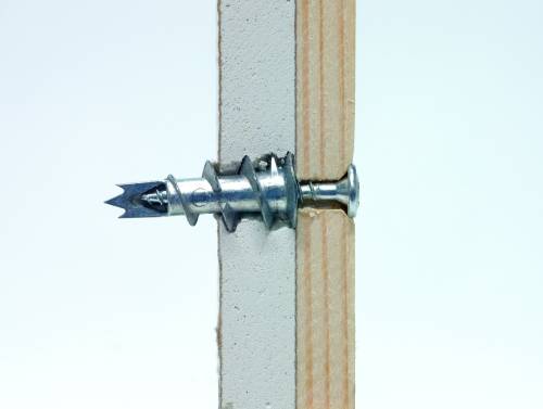 La fixation métallique auto-perceuse GKM usine son propre taraudage dans la plaque de carton-plâtre.