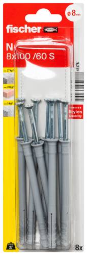 La cheville à frapper N-S avec tête fraisée comprend une cheville en nylon haute qualité et un clou en acier électrozingué. Les éléments sont prémontés afin de permettre une installation rapide. La cheville à frapper convient pour le montage rapide traversant. Lorsque le clou est enfoncé, la cheville s'expanse et s'ancre de façon sûre dans le matériau de construction. La cheville à frapper N-S avec tête fraisée est idéale pour la fixation de structures bois, de raccords de murs ou profilés pour cloison plâtre, ainsi que de colliers pour câbles et tuyauteries dans tous les matériaux de construction.