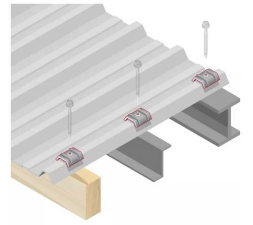Étanchéité qui épouse la forme de la nervure pour une meilleure efficacité. Évite la détérioration du bac acier dûe au frottement. Cavalier en aluminium.