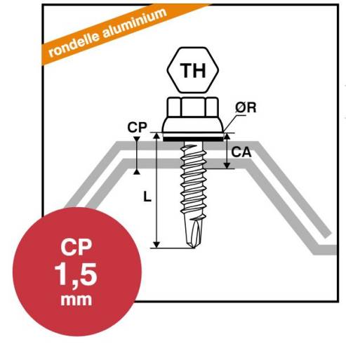 La vis autoperceuse TH se pose en plage en accord avec les spécifications du DTU 40.35. X-Tremcoat C2 / 15 cycles. Z-force head / 20 ans.