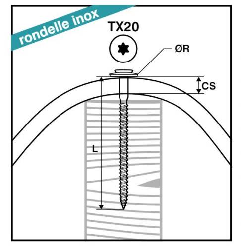 Vis autoperceuse à tête ronde avec rondelle d'étanchéité pré-montée. Inox A2 / 30 cycles.