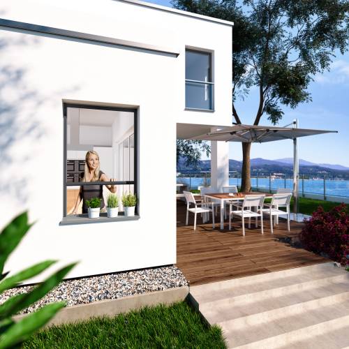 Moustiquaire en fibre de verre, résistante à la déchirure sur une longue durée de vie. Le store peut être coupé individuellement sur la longueur de la cassette jusqu’à 60 cm, le tissu en fibre de verre résistant à la déchirure garde éloignés les moustiques, mouches ou guêpes de manière fiable de vos quatre murs. La brosse spéciale anti-vent fixe de manière sûre le tissu en fibre de verre dans le rail de guidage également lors de grand vent. Montage dans l’ébrasement sans perçage à serrer (accessoires compris) ou à coller (accessoires non compris), montage frontal à visser sur le cadre de la fenêtre (accessoires compris). Garantie 5 ans sur le cadre d’aluminium et pièces de raccord. Place nécessaire (profondeur de montage) de 42mm.