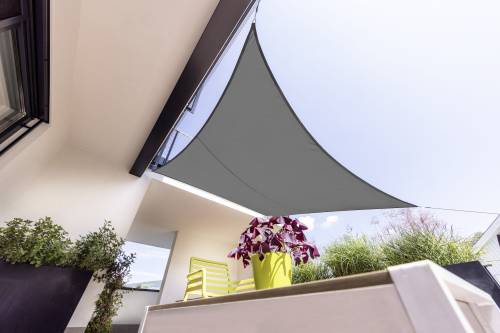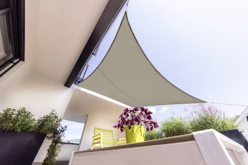 Toile polyester enduit idéale pour ombrager le jardin, la terrasse, le balcon, la piscine ou bien encore le bac à sable de vos enfants. Résistante aux UV, au vent et à l'eau cependant il est conseillé de la retirer en cas de très forte pluie, de tempête ou d'orage. Œillets métalliques pour le fixation. Ourlet périphérique renforcé. Coupe concave pour une tension sans plis. Protection contre les UV 50+. Laver à 30°C ou moins. Ne pas javelliser. Ne pas sécher en machine. Ne pas nettoyer à sec. Peut être repasser. Tissu 180g/m². Respecter une pente de 15° (environ 15cm par mètre) pour l'évacuation des eaux de pluie.