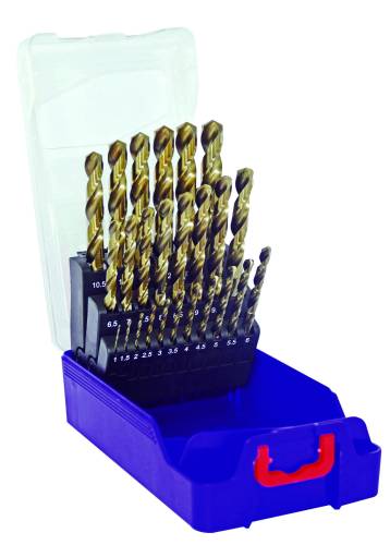 Coffret de 19 forets métaux HSS-E5 cobalt 5% revêtu Gold DIN338