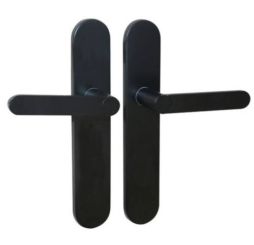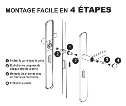 Ensemble de poignées de porte sur plaque, en aluminium et acier. La poignée est assemblée avec un ressort de rappel, qui replace automatiquement la poignée à l'horizontale. Le système de montage des poignées de porte sur plaque EASY-K est une innovation française brevetée et révolutionnaire. Il possède de nombreux avantages, tels que recouvrir les anciens trous et traces, pas besoin de percer la porte, sans vis apparente, ni contrainte d'entraxe de vis. Dimensions plaque : 230x42mm. Poignée : 124mm.