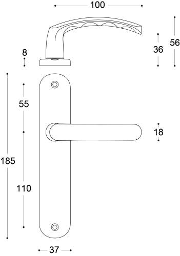 Béquille en aluminium. Ensemble monobloc : béquille et plaque solidarisées. Plaque en aluminium emboutie avec montage par vis bouchon. Carré de 7mm. 2 Vis de fixation M4 entraxe 165mm. Douille de guidage.