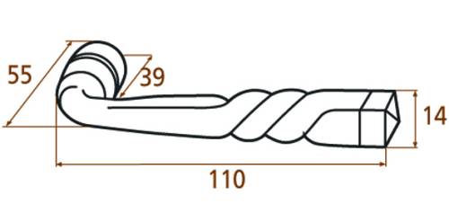 Paire de poignées. Dimensions : 110x55mm, carré de 14mm.