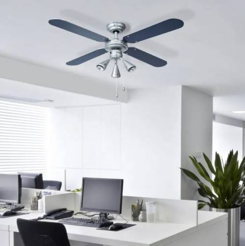 Grande envergure de pale de 102 cm pour une circulation d'air optimale et silencieuse. Équipé d'un moteur électrique bobine en cuivre, donc durable, fiable et silencieux. Équipé de 3 spots lumineux réglables avec douilles GU10. Avec chaînette 4 positions pour le ventilateur (0, 1, 2 et 3). Avec chaînette 2 positions pour l'éclairage (0 et 1). Boîtier du moteur en métal gris argenté. 4 pales du ventilateur en gris argenté ou bleu marine (réversible). Avec interrupteur été/hiver (débit d'air direct ou indirect). Installation facile. Comprend 3 ampoules LED GU10.