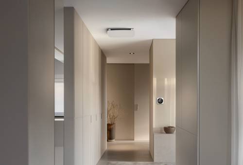 Télécommande design et connectée pour piloter simplement et indépendamment la température de chaque pièce. Cercle de couleur indiquant le mode de fonctionnement. Pilotage et programmation à distance via Atlantic Cozytouch.
