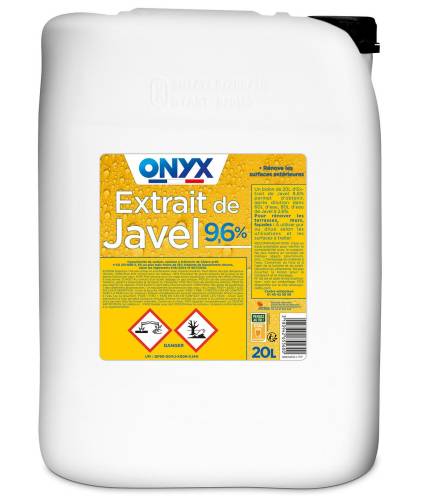 L’extrait de javel 9,6% de chlore actif est un agent décapant, blanchissant concentré. Il convient particulièrement pour rénover et blanchir les pierres brutes, les murs, les terrasses et les façades en retirant les salissures les plus incrustées comme notamment les dépôts engendrés par la pollution. Peut également être utilisé pour blanchir le linge. Economique car concentré et très actif, une faible quantité de produit suffit. L'extrait de javel 9,6% de chlore actif s’utilise soit sous sa concentration d’origine, soit sous forme diluée. Il est possible d'obtenir de l'eau de javel à 2,6% de chlore actif en diluant 1 volume d'extrait de javel avec 3 volumes d'eau.