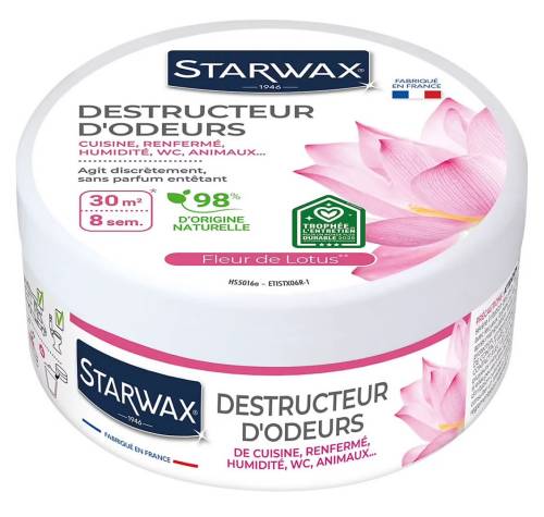 Ce Destructeur d'odeurs de Starwax agira efficacement sur les mauvaises odeurs présentent dans la pièce, pendant plusieurs semaines. Efficace 8 semaines pour 30m². 98% d'origine naturelle.