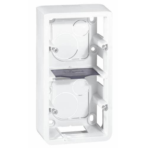 Mosaïc, cadre saillie pour installation en apparent de mécanismes Mosaïc. A utiliser avec le support Batibox. Installation en saillie avec conduits apparents (moulure/goulotte) ou avec conduits encastrés. Livré avec vis.