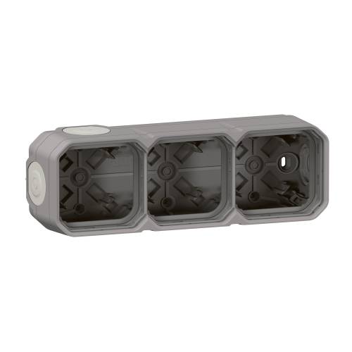 Boîtier étanche en saillie 3 postes horizontaux/verticaux sans cloison avec 5 embouts à membrane Plexo